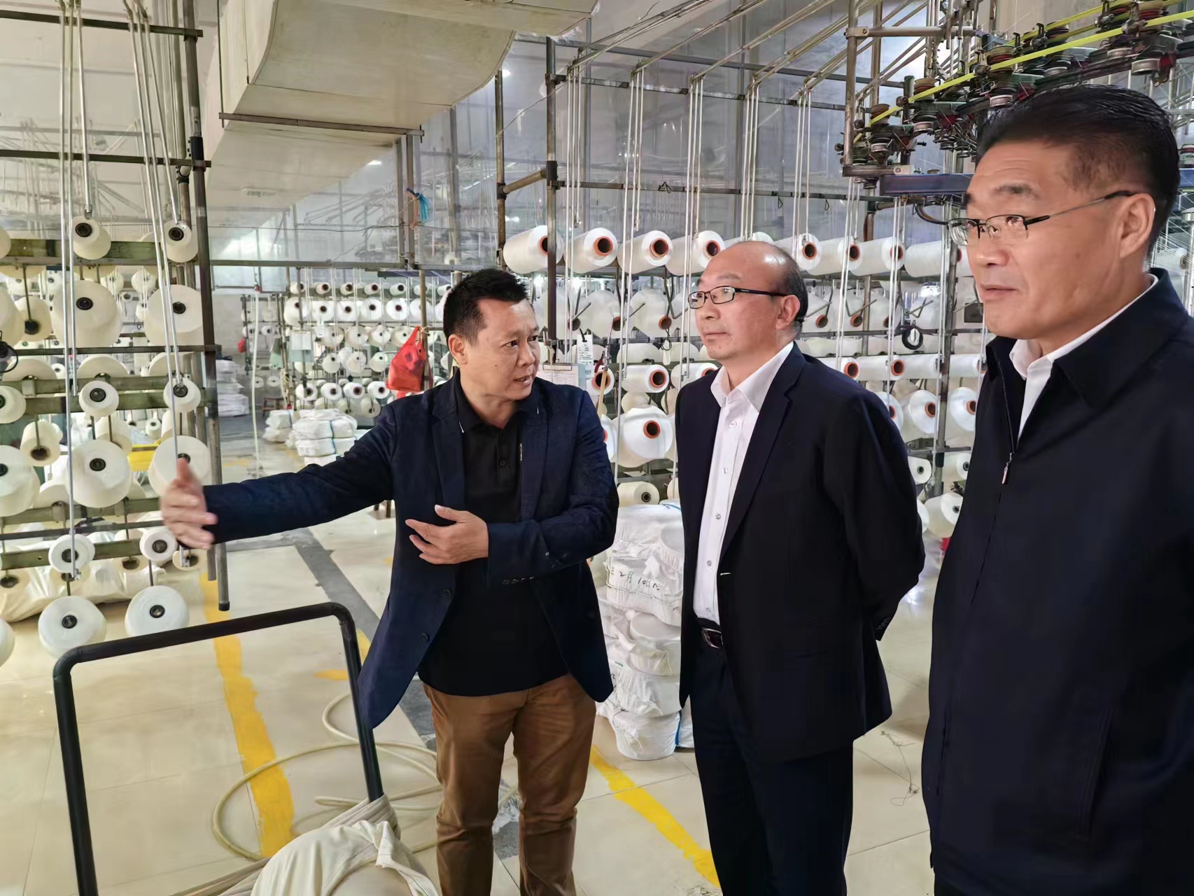 在匯年豐紡織公司,丁銳一行在陸汝針總經(jīng)理的陪同下參觀(guān)了該公司紡織生產(chǎn)線(xiàn),并就產(chǎn)品定位、成本、質(zhì)量及交期等有關(guān)情況進(jìn)行了座談交流。雙方表示,工投集團與匯年豐紡織建立了良好的業(yè)務(wù)合作關(guān)系,希望下一步能夠繼續加深合作,擴大業(yè)務(wù)量。