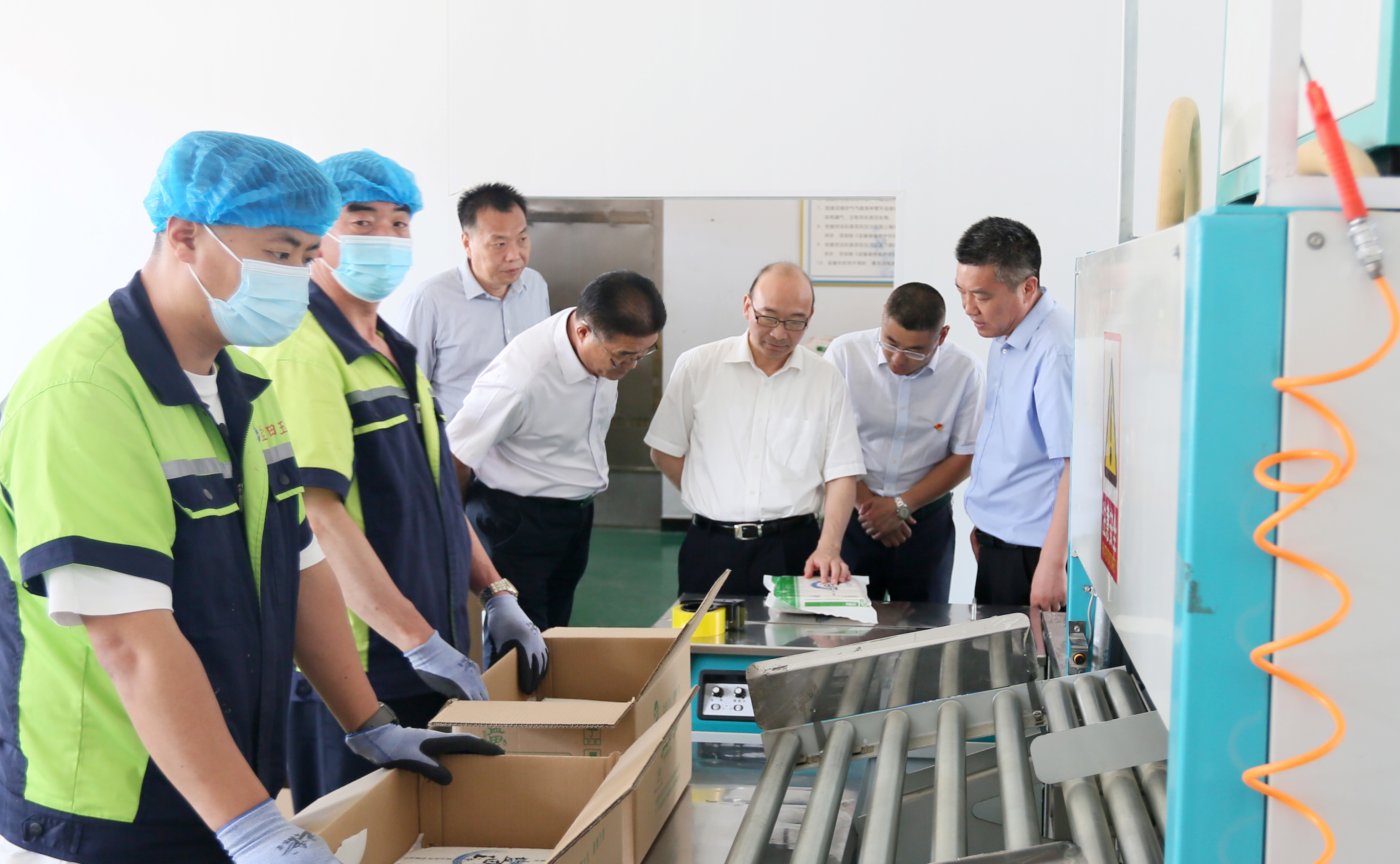丁銳一行先后到大新農場(chǎng)水稻種植、三洋分場(chǎng)生態(tài)化池塘改造、米業(yè)營(yíng)銷(xiāo)中心車(chē)間和展廳等實(shí)地調研,詳細了解農業(yè)生產(chǎn)、海水養殖以及“鹽田玉”品牌建設情況,并為一線(xiàn)條田工送去防暑降溫物品。丁銳指出,青口投資公司從鹽場(chǎng)到農場(chǎng)再到走上市場(chǎng),各業(yè)生產(chǎn)經(jīng)營(yíng)總體平穩,發(fā)展質(zhì)量持續向好。