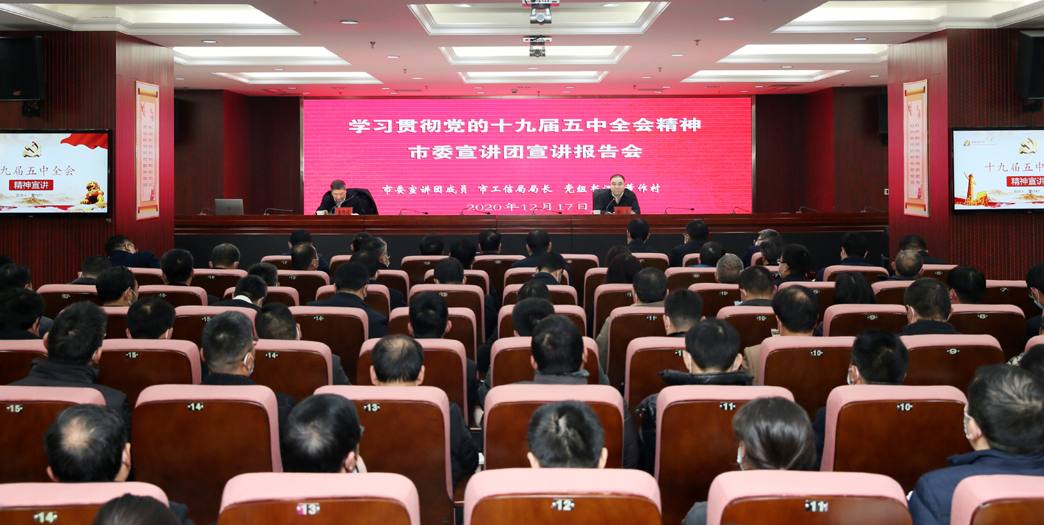 根據市委統一部署,12月17日,市委宣講團來(lái)集團開(kāi)展黨的十九屆五中全會(huì )精神宣講活動(dòng)。市委宣講團成員、工信局局長(cháng)、黨組書(shū)記董作村作宣講報告。集團公司黨委書(shū)記、董事長(cháng)楊龍主持宣講報告會(huì )。