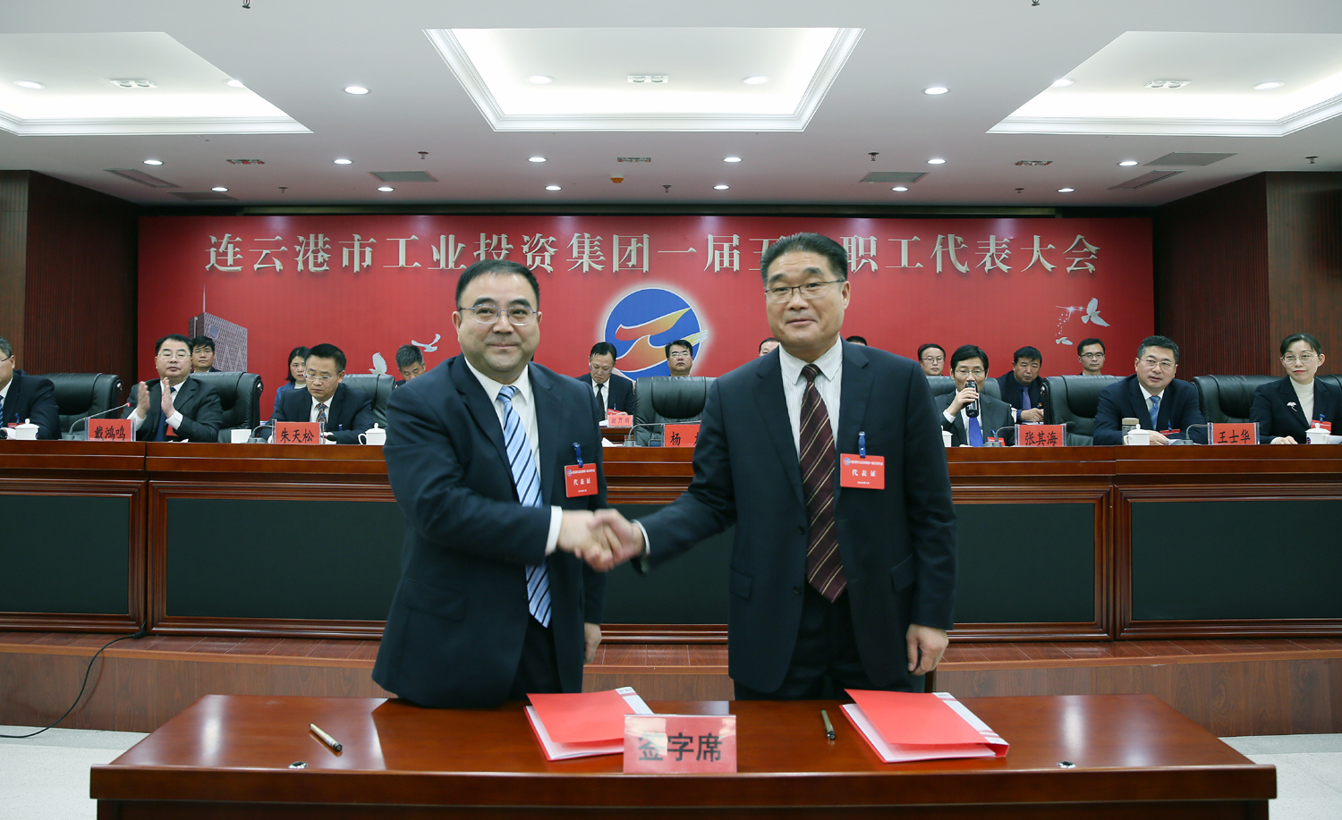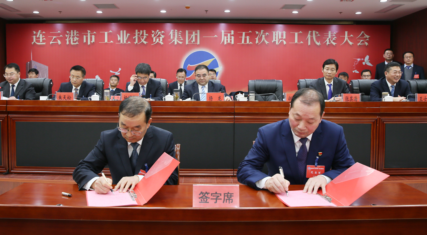 藍圖繪就,正當揚帆破浪;重任在肩,更須策馬揚鞭。1月14日上午9時(shí),在雄壯的國歌聲中,集團公司一屆五次職工代表大會(huì )在總部隆重召開(kāi),來(lái)自各條戰線(xiàn)的職工代表肩負全體工投人的重托,齊聚一堂,共商企業(yè)發(fā)展大計。黨委書(shū)記、董事長(cháng)楊龍作講話(huà),總經(jīng)理胡建明作工作報告。黨委副書(shū)記戴鴻鳴、工會(huì )主席劉承志分別主持大會(huì )。集團公司領(lǐng)導楊國新、張其海、朱天松、王士華、汪群、匡友本、陳如軍在主席臺前排就座。