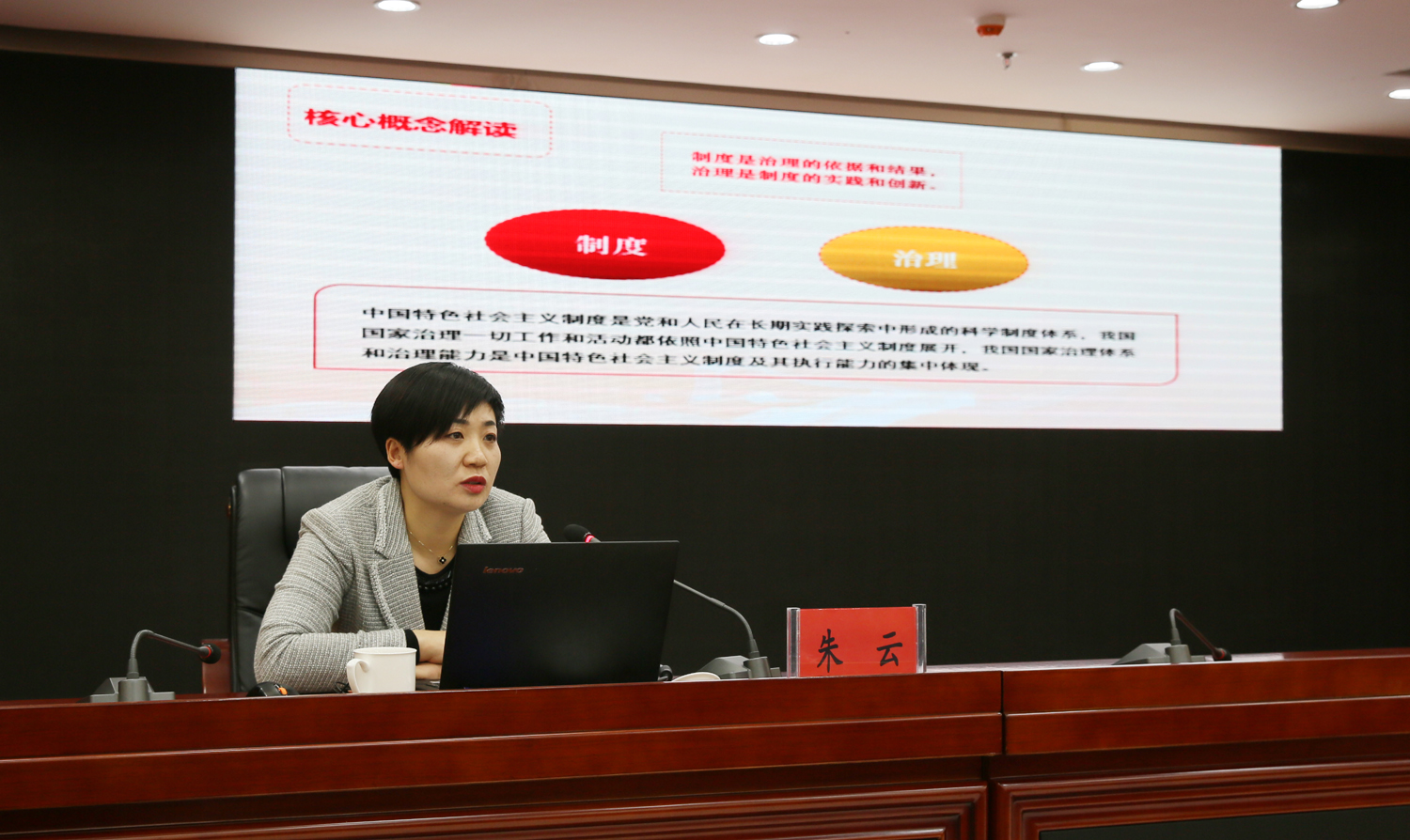 朱云以“開(kāi)辟中國之治新境界”為題,緊緊圍繞黨的十九屆四中全會(huì )精神,系統闡述和深入解讀了堅持和完善中國特色社會(huì )主義制度、推進(jìn)國家治理體系和治理能力現代化的重大意義、總體要求、總體目標、重點(diǎn)任務(wù)。宣講報告聚焦重點(diǎn)和關(guān)鍵,將理論與實(shí)際、案例與數據相結合,內涵豐富、論述精辟、通俗易懂,令與會(huì )人員深受啟迪,倍受教育。