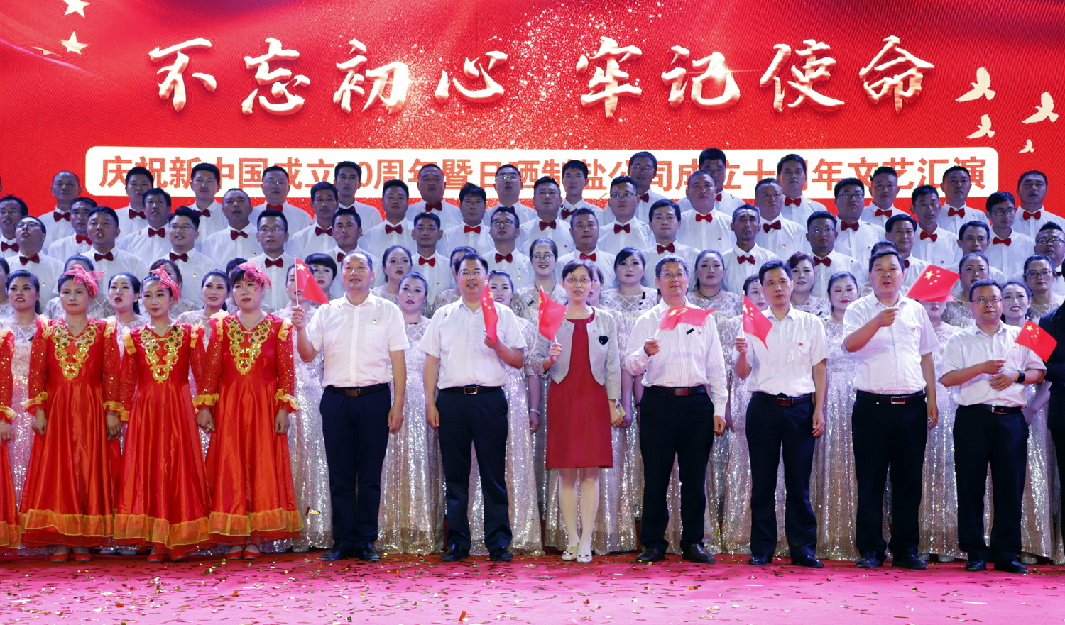 日曬制鹽公司舉辦以“不忘初心、牢記使命”為主題的慶祝新中國成立七十周年、日曬制鹽公司成立十周年文藝演出。憶初心,回顧日曬制鹽公司成立十年來(lái)的發(fā)展歷程;擔使命,展示日曬制鹽公司成立十年來(lái)發(fā)展成就。表彰先進(jìn)、宣傳典型,展示廣大員工創(chuàng )新創(chuàng )業(yè)的奮斗精神和發(fā)展信心。