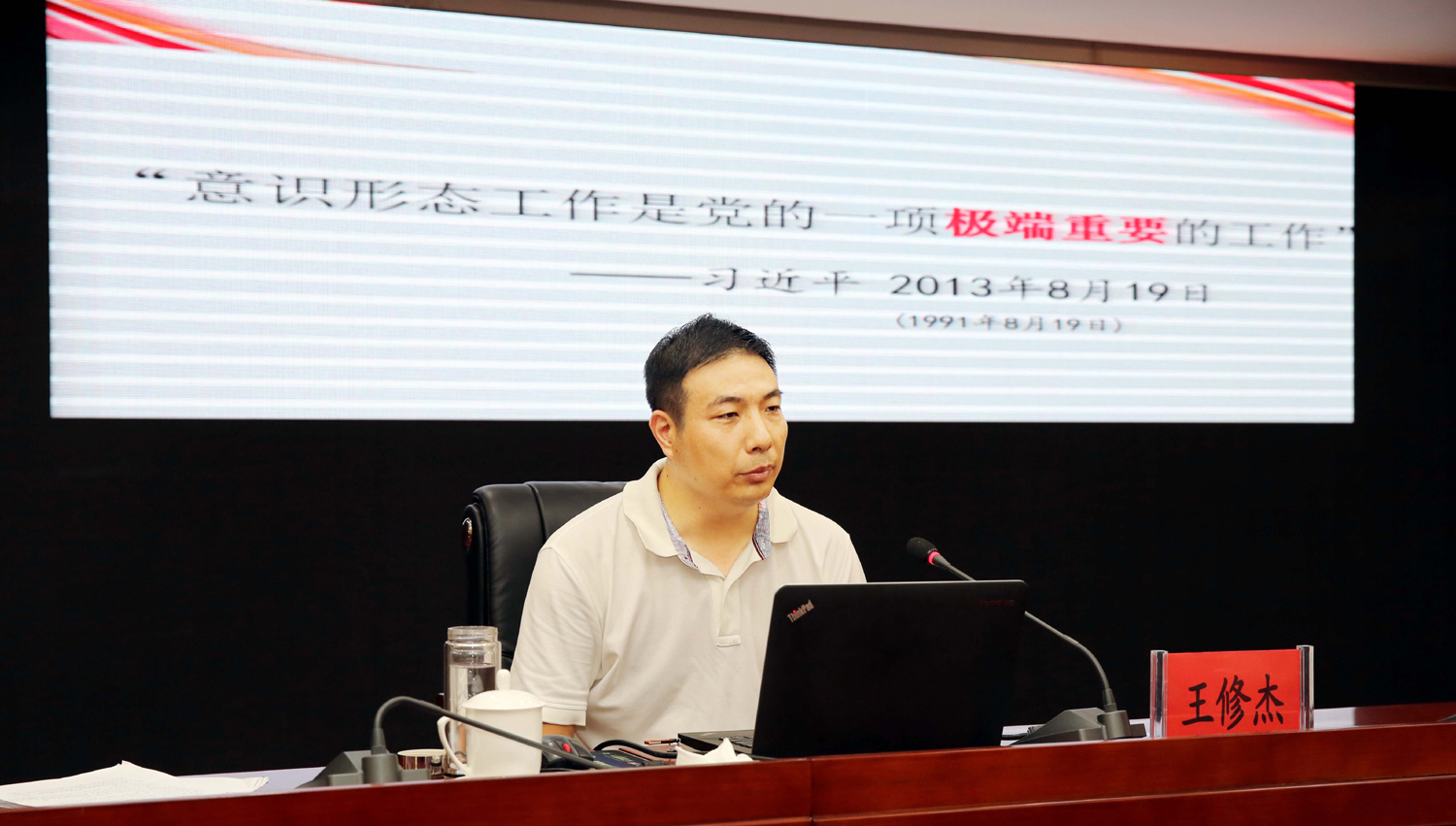 王修杰以“牢牢掌握意識形態(tài)工作的領(lǐng)導權”為題,結合國際國內形勢和我市實(shí)際,圍繞充分認識意識形態(tài)工作的極端重要性、深刻把握當前意識形態(tài)領(lǐng)域復雜形勢、全面落實(shí)黨委意識形態(tài)工作責任制等方面內容,深入淺出的剖析解讀了意識形態(tài)工作的基本內涵、重大意義,報告主題鮮明、內涵深刻、闡述透徹、聯(lián)系實(shí)際、條理清晰,既有理論思考、又有經(jīng)驗總結,為與會(huì )人員深刻理解和把握新時(shí)代國企意識形態(tài)工作的新使命、新要求、新任務(wù)、新方法具有很強的現實(shí)指導意義。