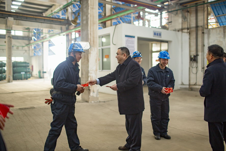 2月5日,集團公司董事長(cháng)、黨委書(shū)記楊龍,黨委副書(shū)記戴鴻鳴等領(lǐng)導輕車(chē)簡(jiǎn)從,深入氯堿公司、氨綸公司、華茂公司、供電公司等基層單位,向春節期間堅守在生產(chǎn)一線(xiàn)的廣大員工致以節日的問(wèn)候和祝福,并送去慰問(wèn)品。