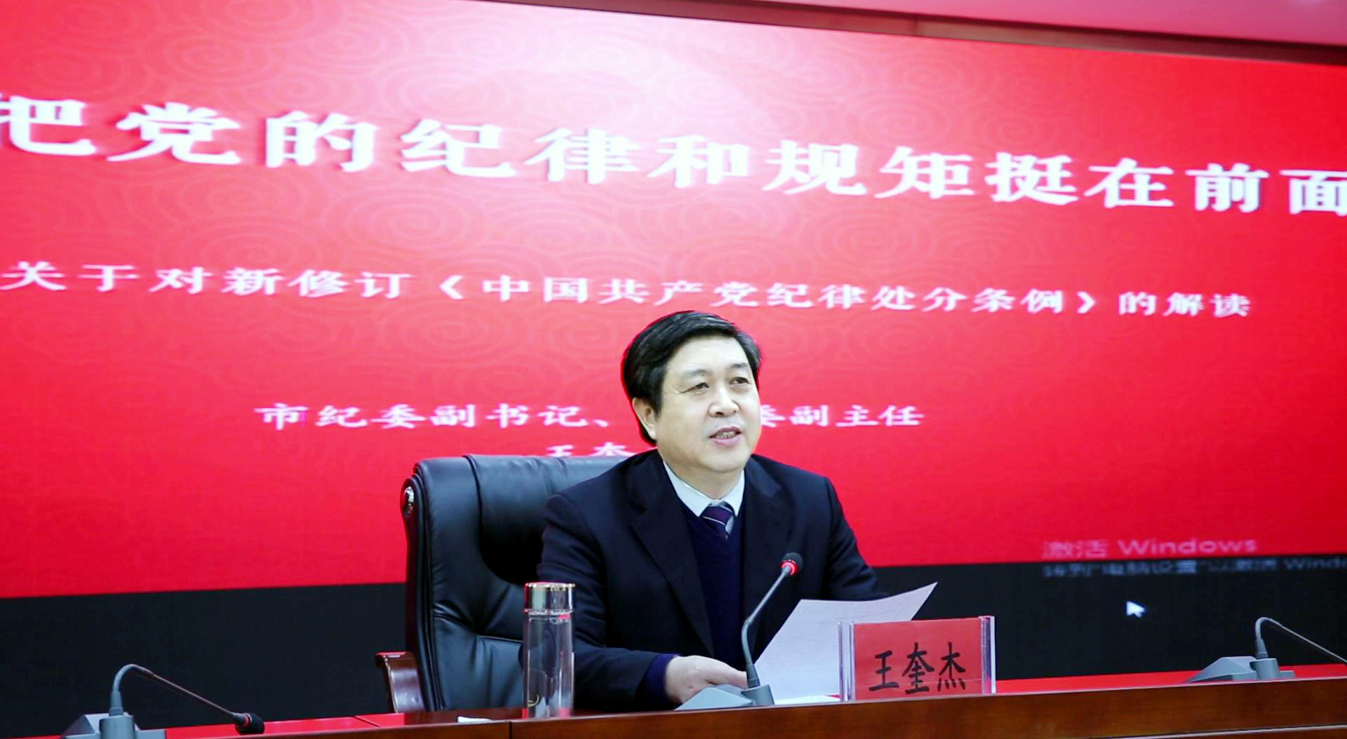 王奎杰?chē)@要充分認識新《條例》的重大意義,切實(shí)增強學(xué)習貫徹的自覺(jué)性和堅定性;要認真學(xué)習新《條例》的增改內容,引導黨員干部做到心有所畏、言有所戒、行有所止;要迅速掀起新《條例》學(xué)習宣傳熱潮,著(zhù)力推動(dòng)全面從嚴治黨向縱深發(fā)展等三個(gè)方面,對《條例》進(jìn)行了深入解讀,報告內容豐富、條理清晰、重點(diǎn)突出,對廣大黨員干部更好地學(xué)深學(xué)透《條例》具有很強的指導意義。