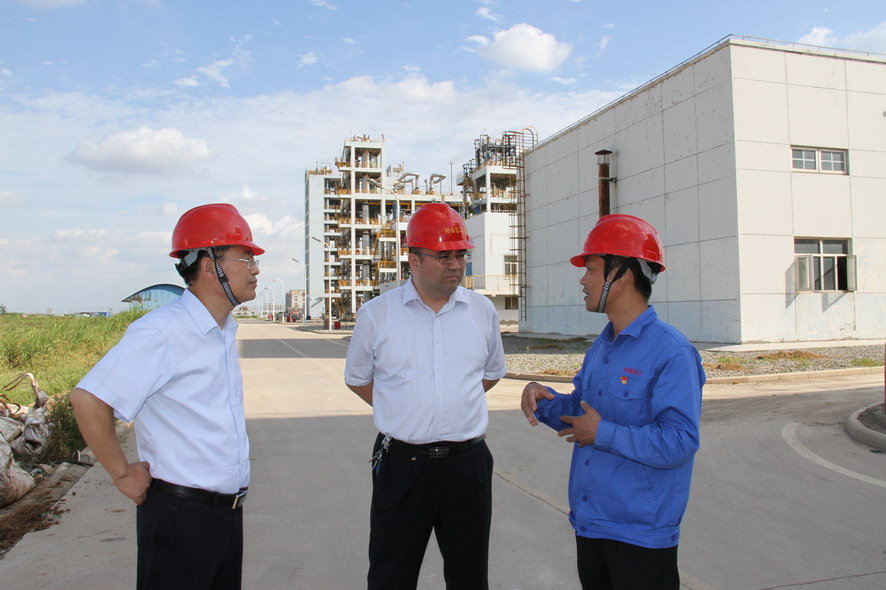 楊龍一行先后查看了生產(chǎn)廠(chǎng)區各裝置運行情況、固廢庫暫存區、固廢暫存庫建設現場(chǎng)、廠(chǎng)內堿渣和鈦渣拋填試驗場(chǎng)地,了解氯化芐二期試生產(chǎn)、上下游廠(chǎng)家、外商貿易等情況。楊龍強調,要提高綠色發(fā)展意識,壓實(shí)各級責任,做好安全環(huán)保工作,并要以產(chǎn)品銷(xiāo)售、新項目開(kāi)發(fā)、固廢綜合利用為抓手,全方位、多渠道拓展市場(chǎng),為工投鹽化工產(chǎn)業(yè)發(fā)展夯實(shí)基礎。