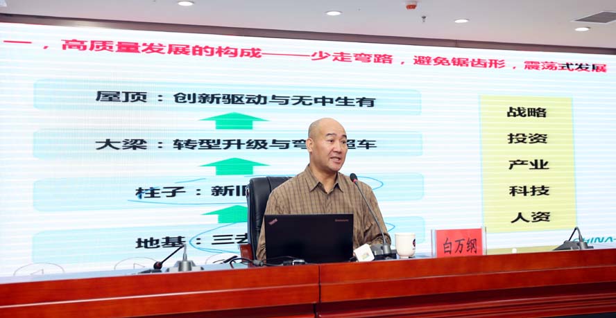 本次培訓班邀請上海華彩咨詢(xún)集團總裁白萬(wàn)綱博士、副總裁江斐圍繞“高質(zhì)量發(fā)展導向下的企業(yè)改革與企業(yè)管理”、“新常態(tài)背景下的集團型企業(yè)的資本運作”作了專(zhuān)題輔導培訓。兩位專(zhuān)家學(xué)者結合工投集團實(shí)際,理論與實(shí)踐相結合,運用大量翔實(shí)的數據和實(shí)例,祥細闡述和解讀了在高質(zhì)量和新常態(tài)的發(fā)展大勢下,國有企業(yè)跨越發(fā)展與改革管理、資本運作三者之間的緊密聯(lián)系,主題鮮明、內涵豐富,具有很強的針對性、前瞻性和指導性。
