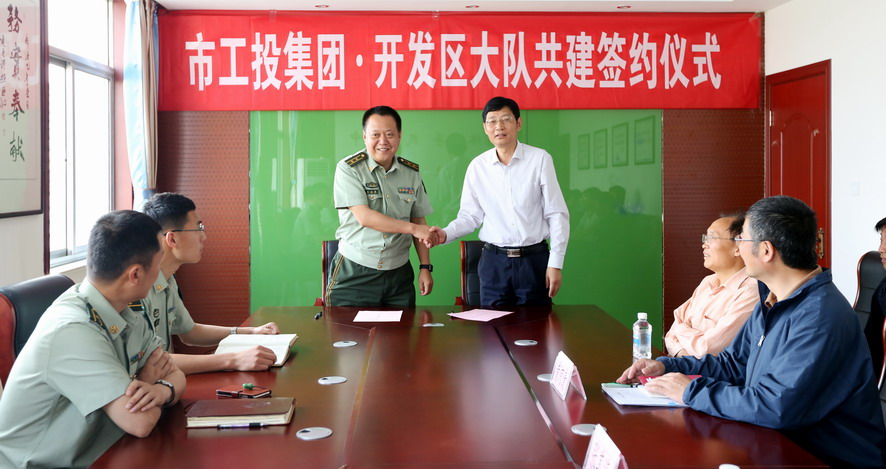 5月25日,集團公司與市開(kāi)發(fā)區消防大隊簽訂“雙聯(lián)共創(chuàng )”協(xié)議,雙方將圍繞“兩學(xué)一做”學(xué)習教育、崗位互換交流、消防培訓業(yè)務(wù)交流等方面開(kāi)展警企共建互動(dòng)。集團公司公司副總經(jīng)理張其海、市開(kāi)發(fā)區消防大隊教導員王正強、大隊長(cháng)公浩等出席簽約儀式。