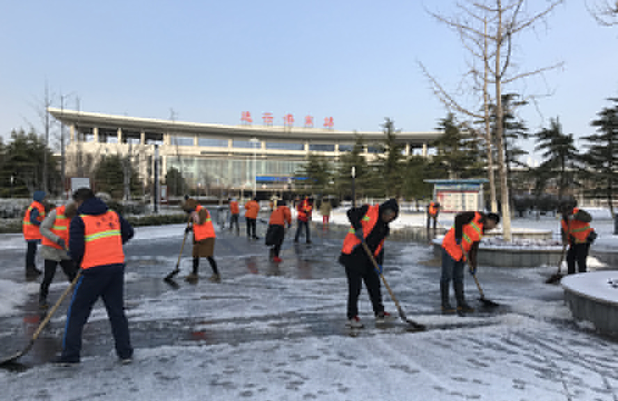 現值嚴寒時(shí)節,積雪容易導致路面結冰,給上下班的交通和居民出行帶來(lái)嚴重影響,為確保人、車(chē)流高峰期間交通安全,華茂公司領(lǐng)導班子精心組織、緊密協(xié)調,31日天一亮,公司領(lǐng)導班子分赴各基層單位坐陣指揮,廣大干部職工奮戰在清冰除雪一線(xiàn),大家揮動(dòng)著(zhù)雪鏟、鐵鍬、掃把等清雪工具除冰掃雪,對交通壓力較小的路段采用人工堆積清理和車(chē)輛集中清運相結合的方式進(jìn)行掃雪;對交通壓力較大的路段運用大型除雪機械進(jìn)行清雪作業(yè),為疏通交通提供保障。