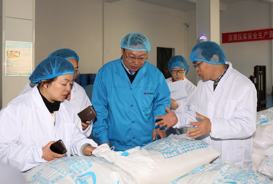 11月7日,組長(cháng)高湘陵、省經(jīng)信委消費品工業(yè)處姜輝、張洪忠處長(cháng)一行在市經(jīng)信委副主任盧忠寶的陪同下,到金橋制鹽公司進(jìn)行國家食鹽定點(diǎn)生產(chǎn)企業(yè)證書(shū)、食鹽批發(fā)許可證書(shū)換證驗收審核。集團公司總經(jīng)理胡建明、總會(huì )計師匡友本參加驗收。