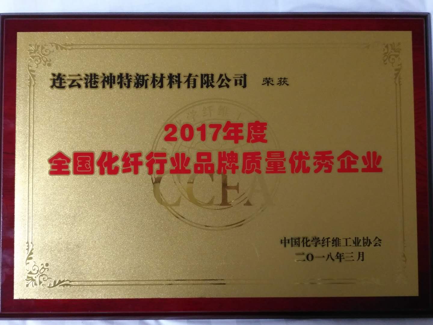 3月13-14日,由中國化學(xué)纖維工業(yè)協(xié)會(huì )主辦的“中國化纖行業(yè)高質(zhì)量發(fā)展論壇暨第四次理事會(huì )擴大會(huì )議”在上海召開(kāi)。會(huì )上,神特公司榮獲“2017年度全國化纖行業(yè)品牌質(zhì)量?jì)?yōu)秀企業(yè)”稱(chēng)號。