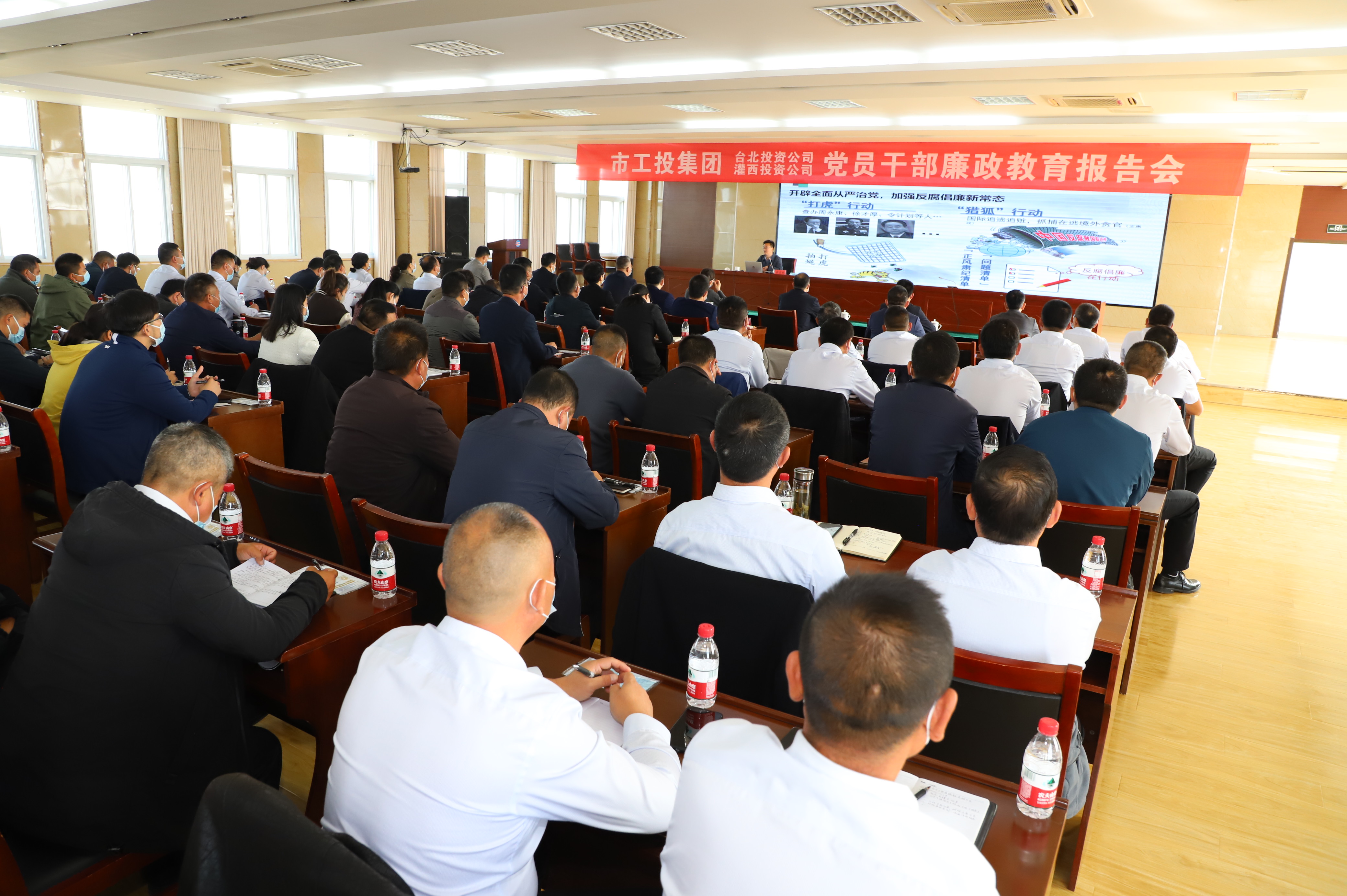 為認真貫徹落實(shí)黨的二十大精神,持續深化全面從嚴治黨,進(jìn)一步增強黨員干部廉潔自律意識,10月28日上午,灌西、臺北投資公司聯(lián)合舉辦廉政教育報告會(huì )。集團紀委書(shū)記汪群、副書(shū)記王建松出席報告會(huì )。
