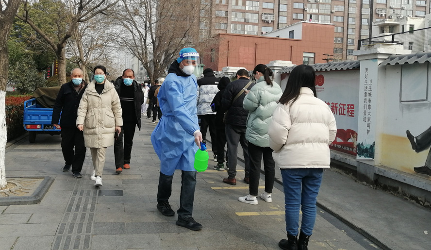 他們是知險而為的逆行者。疫情發(fā)生以來(lái),投資公司各級黨組織深入推進(jìn)“黨旗飄一線(xiàn)、戰疫沖在前”黨內專(zhuān)題教育實(shí)踐活動(dòng),涌現出王同林、汪洋、楊波、丁樂(lè )東等一批主動(dòng)請戰上“疫”線(xiàn)的志愿者,成為港城“疫”線(xiàn)那一抹“天使白、志愿藍”風(fēng)景里熠熠生輝的“徐圩點(diǎn)”。他們受居家隔離因素制約,就近參加街道社區的疫情防控工作,協(xié)助社區全方位開(kāi)展核酸檢測、電話(huà)查訪(fǎng)、信息錄入、樓戶(hù)排查、場(chǎng)所消毒、巡邏宣傳等志愿服務(wù)工作。他們中間既有夫妻齊上陣,也有父子同站崗;既有在崗黨員,也有二線(xiàn)黨員。家住興業(yè)時(shí)代小區的侍作華、趙啟英夫婦,自參加防疫志愿行動(dòng)以來(lái),每天負責300份居民物資送貨任務(wù),先是由妻子搬運到樓下,再由丈夫挨家送上門(mén)。相對于無(wú)電梯的多層樓,身穿“大白”的侍作華每天樓梯來(lái)回數十趟,即使是跑酸腿腳、濕透衣服、干了嗓子,也沒(méi)有遞減他堅持就是勝利的戰“疫”信心。作為工投集團防疫志愿服務(wù)隊隊員的孫海波,在派駐同科小區的日子里,每天身穿密不透風(fēng)的“大白”防護服,一穿就是十幾個(gè)小時(shí)不下身,即便是汗水浸皺了雙手、臉頰勒出了溝痕,仍然馬不停蹄忙著(zhù)安排人員做核酸、上門(mén)排查健康碼情況,近距離接觸黃、紅碼人員,和同事先后完成小區1000余戶(hù)家庭兩次排查和35000人次核酸檢測人員身份信息采集工作。被社區稱(chēng)為“志愿書(shū)記”的胡可志,從戰“疫”動(dòng)員令發(fā)出的當天,就志愿參加平山社區的防疫工作。一人多角色的他,既是秩序員,也是消毒員;既是喊話(huà)員,也是宣傳員;既是居民健康碼的驗證員,也是“一米線(xiàn)”距離的監督員。在連續多天的志愿服務(wù)中,也讓社區人員徹底認可他這位不錯的“組織員”。悅升公司居家隔離的青年員工潘浩聽(tīng)說(shuō)單位值守員工王亮因突發(fā)哮喘舊疾,及時(shí)通過(guò)社區報備、藥房購藥、卡口傳藥等環(huán)節把應急藥物轉送到王亮手中,成為架設“愛(ài)心通道”的有心人。