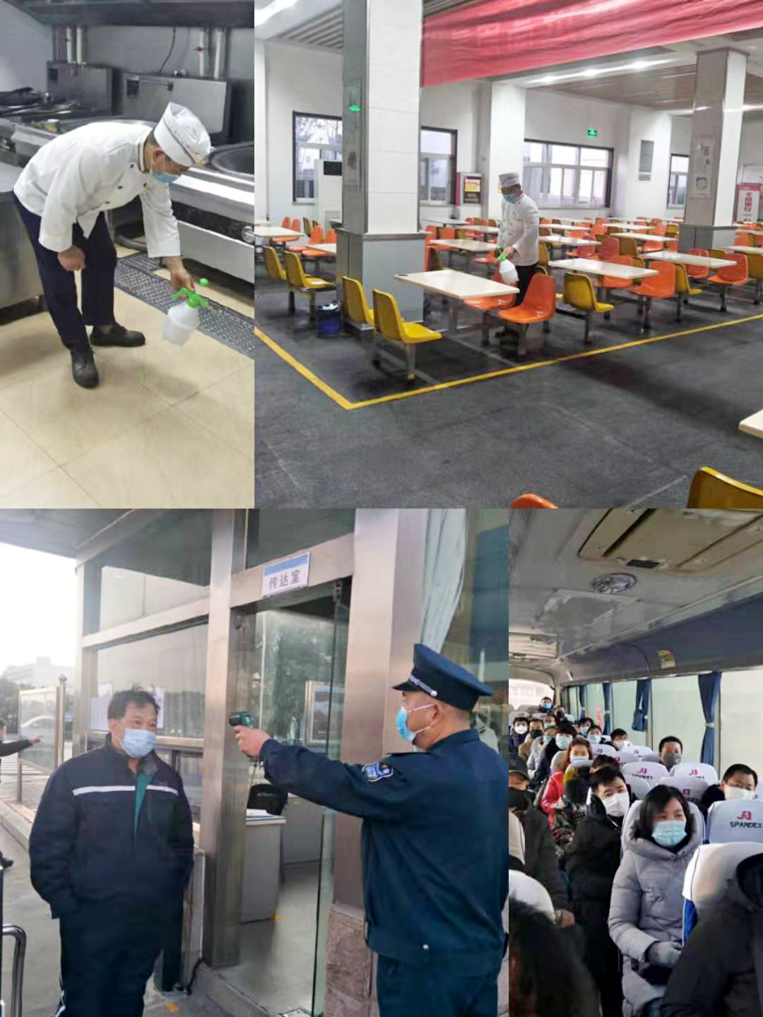 全力做到“三個(gè)全覆蓋”。一是消殺全覆蓋,做到無(wú)死角。結合疫情防控實(shí)施方案全面開(kāi)展衛生整治消殺,對進(jìn)廠(chǎng)車(chē)輛、食堂、廁所、辦公區、操作平臺、作業(yè)電梯等每4小時(shí)進(jìn)行全面消毒。二是摸排全覆蓋,做到無(wú)縫隙。以部門(mén)為單位進(jìn)行全員摸排并建立日報制度。在公司門(mén)口使用溫度檢測儀器測量入廠(chǎng)人員體溫,體溫正常允許進(jìn)入,發(fā)現體溫異常人員立即上報公司安全部或者值班領(lǐng)導執行應急隔離救援。對外地回廠(chǎng)人員,特別對疫區或途徑疫區的到廠(chǎng)人員進(jìn)行重點(diǎn)摸排。三是宣傳全覆蓋,做到無(wú)遺漏。利用公司宣傳欄、紅色長(cháng)廊、網(wǎng)站、公眾號、微信群等宣傳陣地開(kāi)展宣傳培訓,對員工開(kāi)展疫情防控知識培訓。將公司的防控措施、應急預案、就醫流程、疫情防護等應知應會(huì )的防疫知識傳達到每一位員工,引導他們科學(xué)防疫。