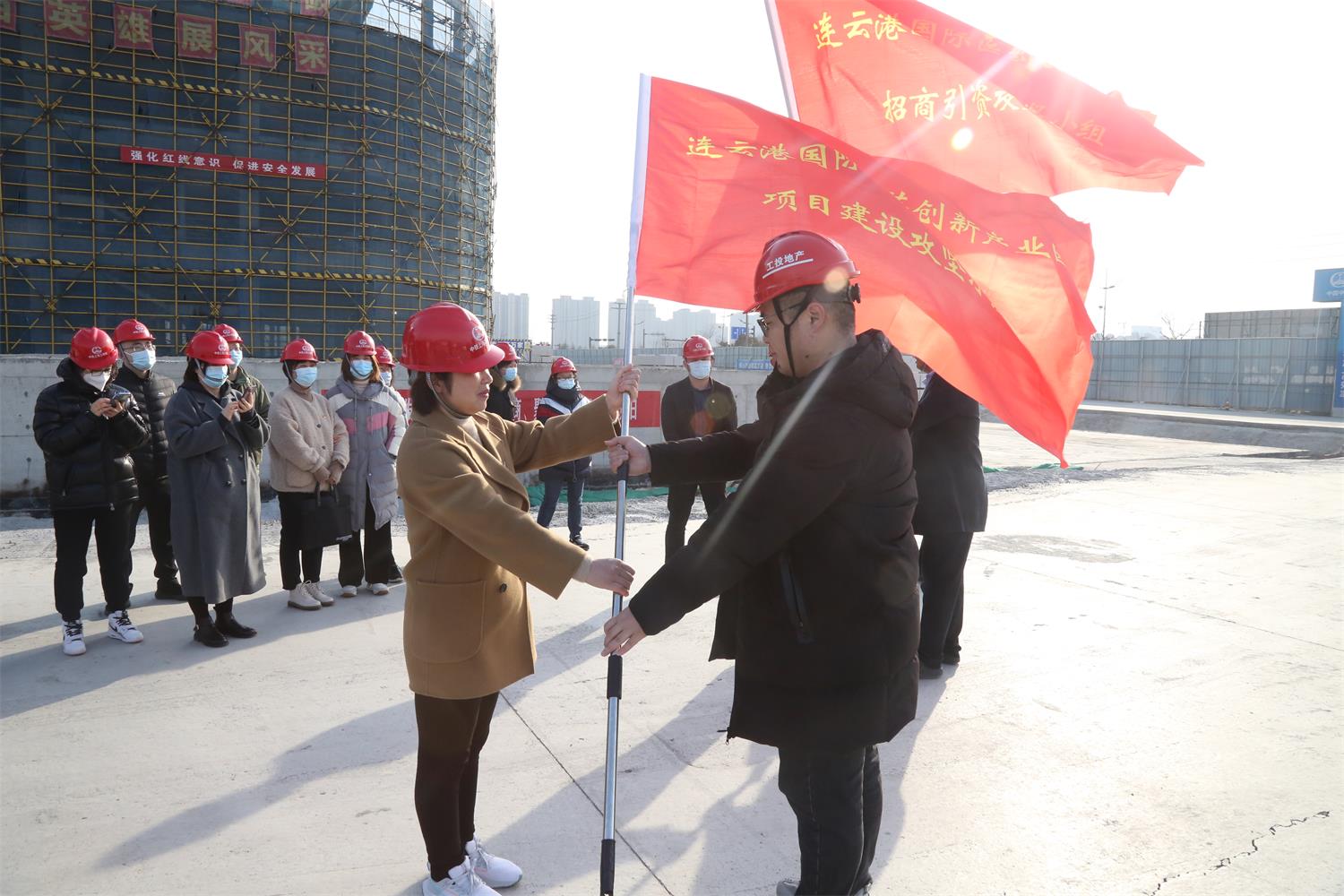 組織黨員干部赴自貿區連云港國際醫藥創(chuàng )新產(chǎn)業(yè)園一期、二期項目現場(chǎng),親身感受園區招商引資和二期項目建設火熱的大干氛圍。在項目現場(chǎng),機關(guān)黨支部書(shū)記向廣大黨員傳達學(xué)習市委書(shū)記馬士光在全市招商引資暨重點(diǎn)產(chǎn)業(yè)項目推進(jìn)大會(huì )精神。隨后進(jìn)行了項目建設攻堅小組和招商引資攻堅小組的授旗儀式。廣大黨員干部充分感受了公司招商引資和項目建設的強勁勢頭,觀(guān)摩學(xué)習結束后,還召開(kāi)了專(zhuān)題交流座談會(huì ),部分黨員講心得、談體會(huì ),進(jìn)一步總結運用觀(guān)摩學(xué)習成果。