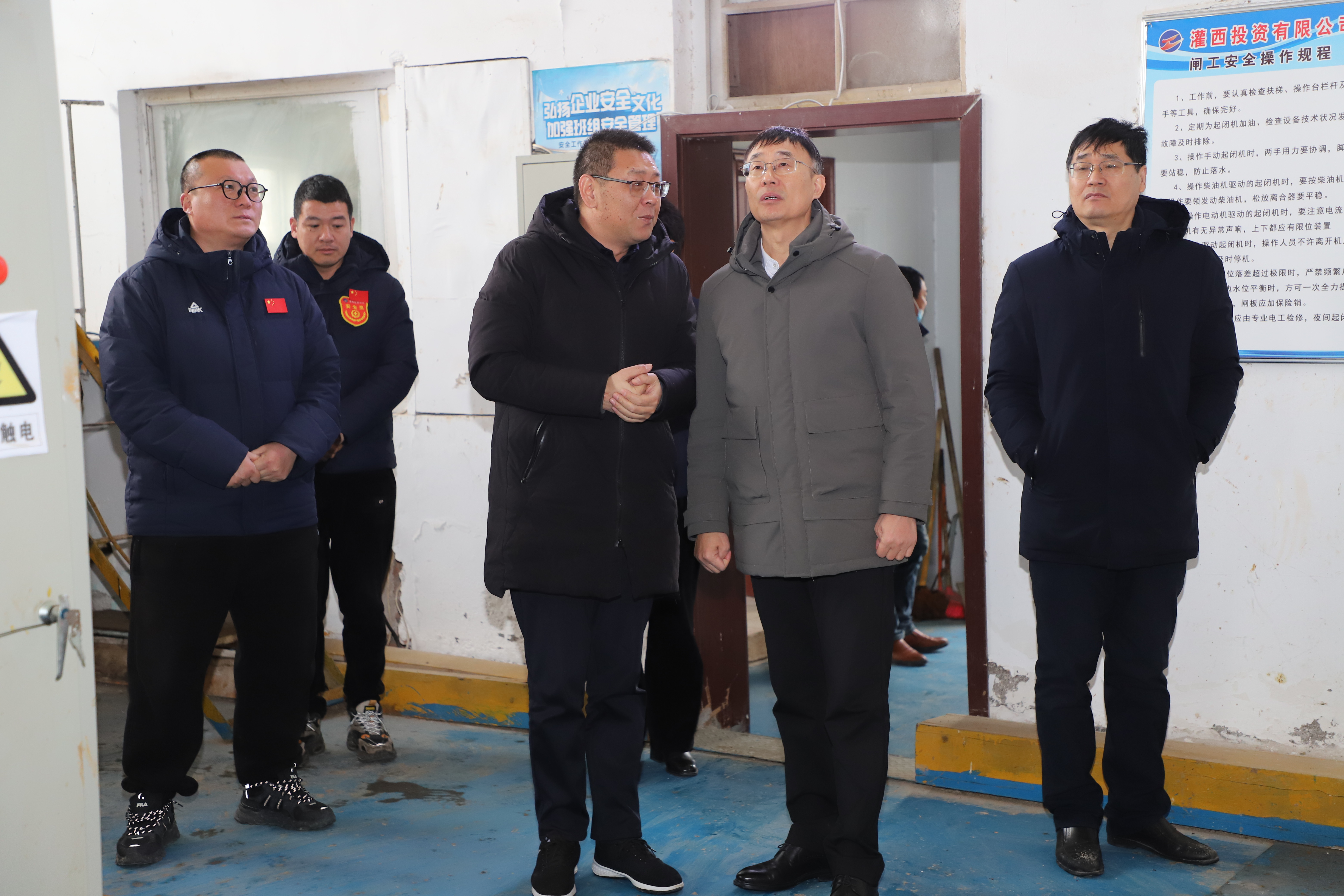 2月1日,集團公司總經(jīng)理張六林一行來(lái)灌西投資公司督導春節前安全工作。公司黨委書(shū)記、董事長(cháng)孫政權、常務(wù)副總經(jīng)理徐一林、黨委副書(shū)記、工會(huì )主席王宏陪同檢查。