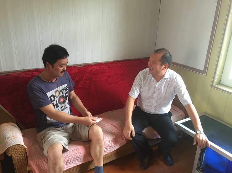 7月28日,投資公司總經(jīng)理李國文一行帶著(zhù)慰問(wèn)金,來(lái)到日曬制鹽公司患病職工孫榮成的家里,為他送去公司黨委的關(guān)愛(ài)和溫暖,鼓勵他樹(shù)立戰勝病魔的信心和勇氣。
