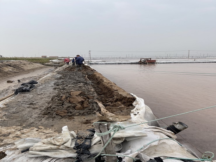原鹽產(chǎn)量、質(zhì)量一直是企業(yè)的生命線(xiàn),而如何把控好質(zhì)量關(guān),冬準工作尤為重要。20日下午,公司經(jīng)理程龍一行,在提前結束秋扒的6班召開(kāi)了現場(chǎng)會(huì ),要求各片區負責人督促好扒過(guò)鹽的格塊整理,利用當前晴好天時(shí)做好除硫工作,保證越冬鹵水全部除硫;同時(shí)指出,當前天氣情況多變,為應對多變天時(shí),工作要抓前、抓早提前進(jìn)入“冬準”狀態(tài);為了提高池埝的密實(shí)度,減少鹵水側向滲漏,每條池堰都要進(jìn)行人工踩壓、和熟、做實(shí),嚴格修灘標準化,達到“溝底、坡面、埝頂”,三面見(jiàn)光,溝道平整、條條上線(xiàn)。