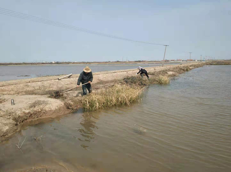 俗話(huà)說(shuō):“一年之計在于春”,鹽業(yè)生產(chǎn)同樣如此,清明節后隨著(zhù)氣溫和蒸發(fā)量逐步升高,一班“甜頭”4至8排大米草泛濫成災,有部分格塊灘面被大米草完全覆蓋,嚴重制約了正常制鹵工作。面對困難,該班組沒(méi)有畏懼,沒(méi)有氣餒,5名職工心往一處想,勁往一處,用鐮刀鐵锨割倒挖清格堰大米草,同時(shí)使用割草機,推進(jìn)速度。采取步步推進(jìn),逐塊清除方式,以“愚公移山精神”清除大米草,理順走水路線(xiàn),完善灘地條件。(海水鹽基地朱文龍)