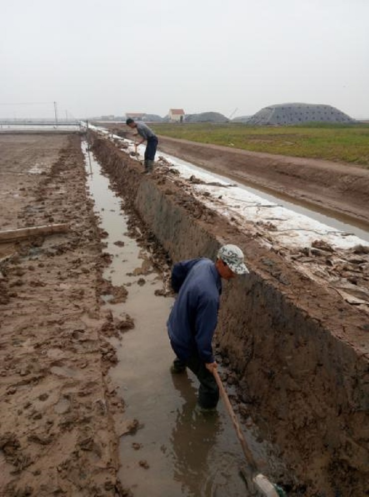 根據公司生產(chǎn)部門(mén)統一要求,在每個(gè)生產(chǎn)班組新灌一塊結晶池,埒南制鹽分公司精心布署,細化安排,嚴控時(shí)間節點(diǎn),抓頭、抓早、抓緊,對生產(chǎn)班組新上的格塊堅持做到現場(chǎng)指導,跟蹤督察,不符合灌池質(zhì)量標準的堅決不準上馬。(圖為職工在修整結晶池堰)莊忠明