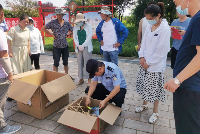 活動(dòng)中,派出所民警現場(chǎng)焚燒毒品農作物,并講解毒品知識、宣傳毒品危害,讓職工群眾更直觀(guān)的認識毒品,加強對毒品的認知能力、自我保護意識和抵御毒品侵害的能力,號召大家積極參與禁毒斗爭,珍愛(ài)生命、遠離毒品。(田盛楠)