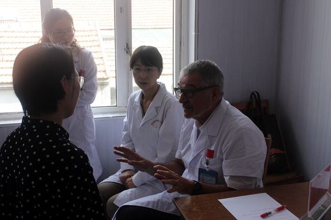 Henning Ritter為德國奧爾登堡大學(xué)附屬醫院乳腺外科教授。長(cháng)期從事婦科腫瘤、產(chǎn)科、乳腺腫瘤治療臨床研究, 2013年獲得歐洲外科協(xié)會(huì )腹腔鏡技能金獎。在活動(dòng)現場(chǎng),Henning Ritter教授帶領(lǐng)市二院的專(zhuān)家,對前來(lái)就診的女工做了認真細致的檢查診斷,有的女工拿著(zhù)之前檢查的結果請教授診斷,專(zhuān)家們對她們提出的問(wèn)題一一做了解答,并給予會(huì )診意見(jiàn)。貼心的服務(wù)讓女職工足不出戶(hù)就可以享受到國際醫學(xué)專(zhuān)家的診斷。