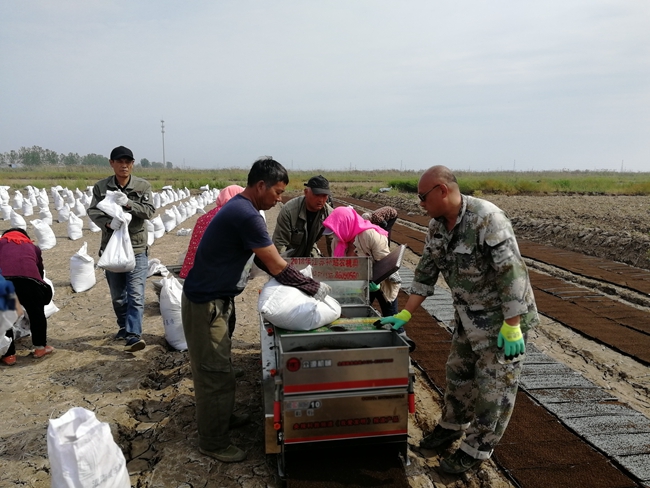 地頭播地龍育秧是最近兩年引進(jìn)的機械化育秧方式,通過(guò)覆基質(zhì)、播種、再覆基質(zhì),一次性完成播盤(pán)任務(wù),條田工之間自愿組合合作購買(mǎi)播種機,互相配合共同完成育秧作業(yè),大幅節約了成本、人工,減少了運輸、擺盤(pán)期間損苗現象;大棚塑盤(pán)暗化育秧,條田管理工互幫互助,自行組織運輸車(chē)輛轉運秧苗至田頭,將轉運時(shí)間由一天半壓縮至半天就能完成,并順帶空盤(pán)回大棚,不僅減少了轉運時(shí)間,大大降低了運輸成本,又促進(jìn)了職工之間團結互助關(guān)系。