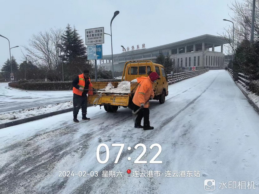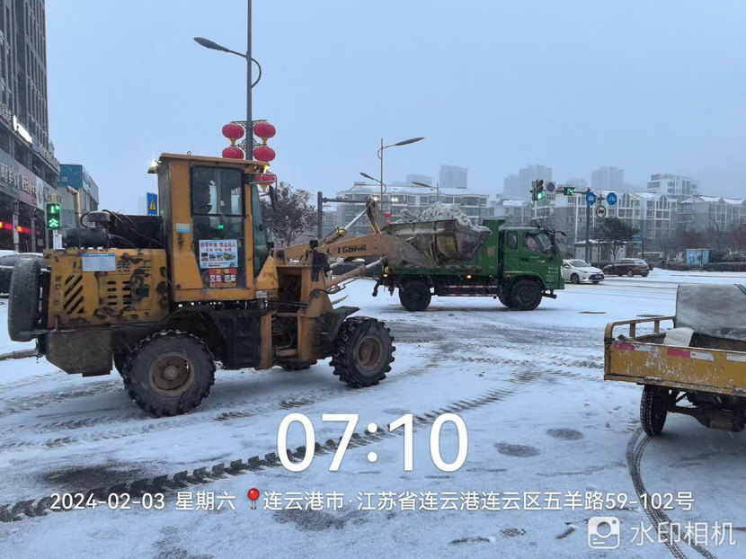 “雪情即戰情”。天剛蒙蒙亮,猴嘴、開(kāi)發(fā)區、連云、墟溝····連云港火車(chē)東站、馬山立交、黃海大道、花果山大道、東方大道·····到處是臺北、華茂公司的“橙色”突擊隊