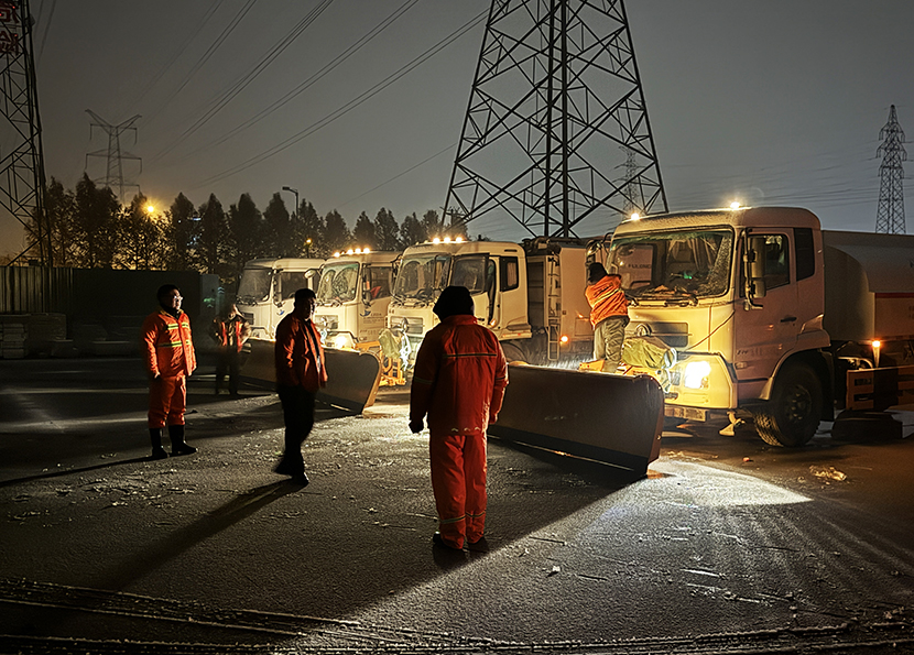 ? ? 環(huán)衛分公司、盛達市政分公司晝夜奮戰,清雪除冰,共出動(dòng)人員160余人次,大型機械車(chē)輛6架,將轄區交叉路口、重要地段及橋面、立交坡路等處的冰雪全部清理干凈,確保過(guò)往車(chē)輛行人的交通安全。