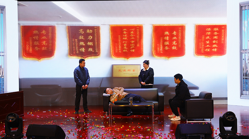 演出在舞蹈《祖國你好》中拉開(kāi)序幕,隨后,一個(gè)個(gè)歡快、喜慶、祥和的文藝作品相繼上演。這其中,既有充分展現臺北發(fā)展力量的情景劇《我們是臺北力量》《南泥灣暢想》,也有大氣磅礴的男女對唱《不忘初心》和小合唱《眾人劃槳開(kāi)大船》,有草原氣息的笛子獨奏《牧民新歌》,諷刺當下“躺平式”干部的廉潔作風(fēng)小品《坑》,展現公司活力的男團《舞蹈:串燒》《山丹丹花開(kāi)紅艷艷》,奇特、神秘的魔術(shù)表演,一腔情懷的京劇《沙家浜-唱段軍民魚(yú)水情》……最后,在機關(guān)全體人員帶來(lái)舞蹈《相親相愛(ài)的一家人》中落幕,高潮迭起、精彩不斷,得到廣泛好評。