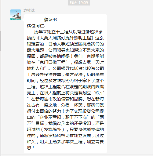 ? ? ? ??精兵強將,火速支援。疫情來(lái)勢兇猛,很多人都難逃魔爪,造成翔立用人短缺,面臨這種難題,翔立鐵軍經(jīng)受住了考驗。朱文江同志陽(yáng)轉陰后,火速到崗,第一時(shí)間帶領(lǐng)大家繼續奮戰;老黃牛喬以成同志已經(jīng)一個(gè)多星期每天吃住都在公司,就是為了自己能夠健健康康接著(zhù)干;袁桂誠同志負責安全管理,但當看到人員短缺,緊急上崗,一邊督促著(zhù)大家安全生產(chǎn),一邊手頭上的活也沒(méi)停下;丁祥生同志輕燒不下火線(xiàn),每天吃點(diǎn)藥準時(shí)到達現場(chǎng)......正是有了這些敬業(yè)的人,翔立才能一次次在困境中走出去,在投資公司黨委的堅強領(lǐng)導下,翔立人將繼續發(fā)揚鐵軍精神,昂揚“四再”創(chuàng )業(yè)精神,淬煉“四拼”工作作風(fēng),攻堅克難,為臺北的發(fā)展拼盡每一份力!