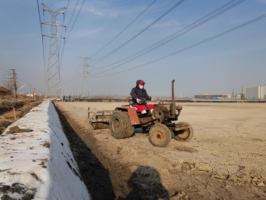 礦鹽復產(chǎn)項目部,聘請日曬制鹽專(zhuān)家王緒前進(jìn)行工藝指導,聘請勞模朱春年帶領(lǐng)團隊攻堅。復產(chǎn)戰役從2021年12月就打響了,春節的時(shí)候,他們僅休了三天假,大年初三全部到崗,一鍬一鍬挖泥通溝,一條一條池堰加高整平,一塊一塊鹽田清理壓實(shí)......到2月,他們硬是把征地后廢棄許久的鹽田和邊角地整理成礦鹽基地,結晶池面積達1950公畝,達產(chǎn)可產(chǎn)原鹽20000噸。