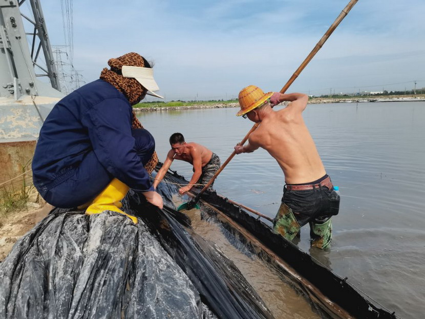 回程途中,我們又經(jīng)過(guò)鈣液生產(chǎn)灘地,廣大職工在鈣液銷(xiāo)售旺季,趕進(jìn)度、搶工期。在海濱泵站,徐松保師傅正在室外查看鈣液計量表,為鈣液車(chē)開(kāi)具單據。據了解,他一天在室外要為20余輛鈣液車(chē)開(kāi)單子,中午吃頓飯出出進(jìn)進(jìn)幾次才能吃完,衣服濕了干,干了濕,十分辛苦!在先鋒泵站,程輝師傅撩起工作服擦了擦臉上的汗水,繼續將潛水泵安置到已廢棄的灘地里,把灘地里的雨水抽干,將廢棄的灘地利用起來(lái)晾曬低濃度的鈣液,解決銷(xiāo)售旺季成品鈣液供不應求難題。用廣大職工的話(huà):天氣再熱,困難再多,也擋不住我們沖刺生產(chǎn)18萬(wàn)方鈣液的腳步。