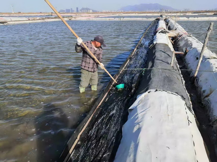 記海州灣公司鈣液灘上的生產(chǎn)標兵—伏廣銀