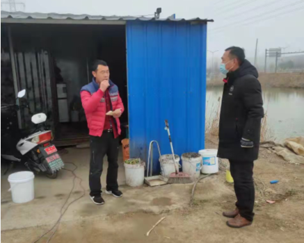 共產(chǎn)黨員趙紹慶和朱文金在疫情期間,除了參觀(guān)社區志愿活動(dòng),進(jìn)行卡口值勤和衛生消毒外,還每天往返于公司各閑置土地之間。他們頂著(zhù)寒風(fēng),穿梭于池塘地頭間,向即將清退的養殖戶(hù)宣傳公司和清退政策,幫助人手不夠的養殖戶(hù)對養殖塘附近進(jìn)行全面環(huán)境消殺,幫助即將退出離開(kāi)的養殖戶(hù)清理各類(lèi)物資,幫助他們把需要帶走的物品整理歸類(lèi),以便盡早搬走,騰出池塘方便開(kāi)發(fā)區征收。