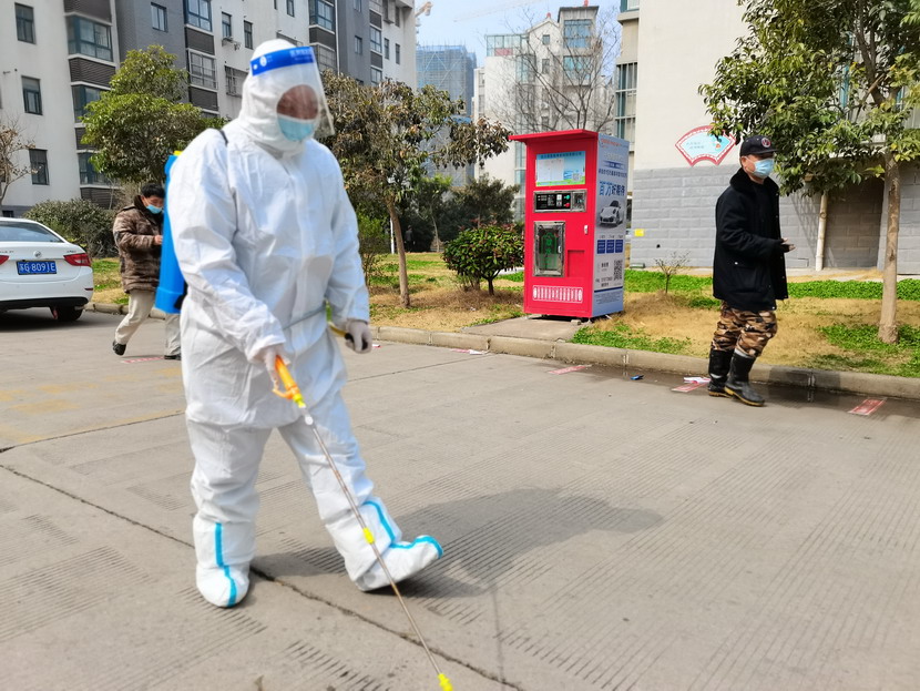 孫銀:“請大家抬一下腳,靠邊站一下,我將您的周?chē)鷩姙⑾疽哼M(jìn)行消毒,謝謝配合!”