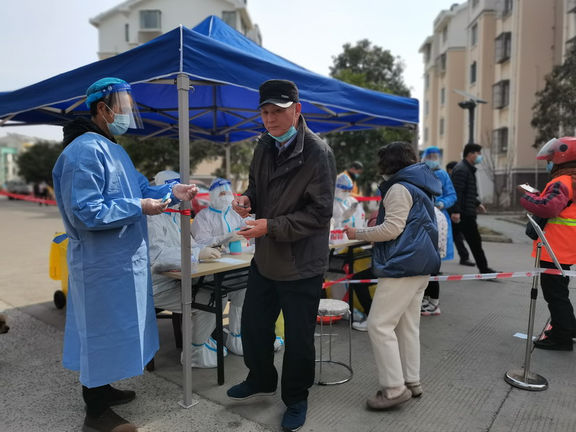 夜里9點(diǎn)40分,昌圩臨時(shí)黨支部抗疫工作群里信息不斷:“同志們,剛接社區緊急通知,明天要進(jìn)行第五輪核酸檢測,還沒(méi)有睡的同志們請到社區緊急集合,又增加兩個(gè)檢測點(diǎn),抓緊去建點(diǎn)擺臺?!? “霍正鋼收到、蘇玲收到、秦黎明收到、朱文健收到、邱榮濱收到、于洪亮收到……”,“好,晚上溫度比較低,請大家穿暖和一點(diǎn),10點(diǎn)社區準時(shí)集合?!辈着R時(shí)黨支部書(shū)記李明發(fā)完最后一條信息,穿好馬甲,戴上口罩,出發(fā)下樓。