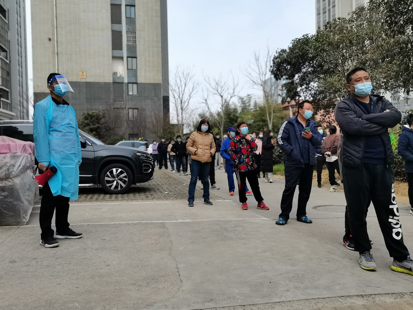 李明:“請大家站好,保持一米線(xiàn)的距離,很快就排到了,不要急躁?!?/span>