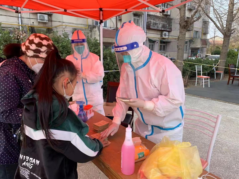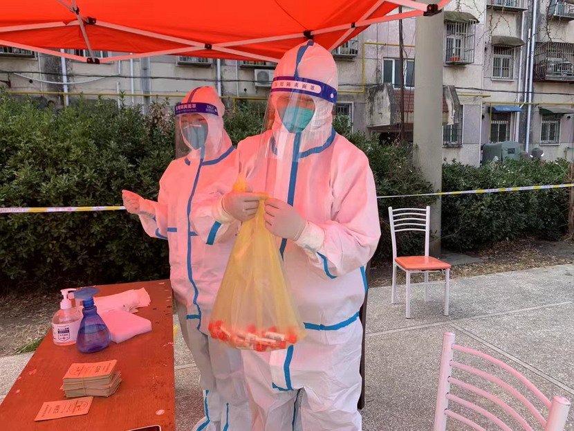 然而隨著(zhù)疫情越發(fā)嚴重,小區核酸檢測員人手又緊張了起來(lái),“我可以,這幾天我都學(xué)會(huì )了,最基本的我都會(huì )”秦英又是第一個(gè)舉手到最前線(xiàn)。這下她更忙了,每天凌晨三點(diǎn)起床做飯,五點(diǎn)社區報到,一直堅守到晚上八點(diǎn)。為了節省防護服,她一般都要等到中午2點(diǎn)多鐘才休息吃飯,這股毅力讓社區、街道領(lǐng)導看在眼里,服在心上,連一直牢騷怪話(huà)的幾個(gè)群眾也為她由衷地豎起大拇指。