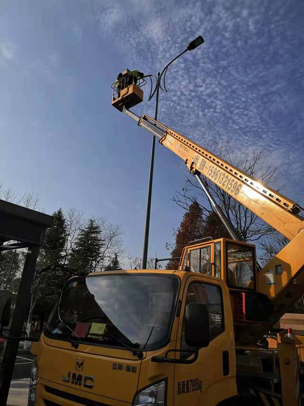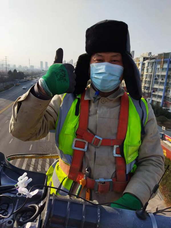 ?該項城市照明提升工程工程量大(約6500套路燈),工期緊。為了趕時(shí)間進(jìn)度,翔立“鐵軍”們由12月27開(kāi)始施工,日以繼夜、馬不停蹄的連續奮戰在工程一線(xiàn),沒(méi)有一個(gè)人掉隊,沒(méi)人喊苦叫累,個(gè)個(gè)都像鉚足了勁的“小牯?!?。肩帶《安全員》紅袖章的工程負責人喬以成騎著(zhù)電瓶車(chē)不時(shí)地在海寧大道上來(lái)回穿梭著(zhù),“王師傅,高空作業(yè)車(chē)四條支撐臂必須支撐平穩牢固后再提升哦”,“段青春,把前方施工的警示牌擺在車(chē)輛后面,還有道路安全錐桶一定要將作業(yè)區域圍起來(lái),與后面來(lái)車(chē)方向保持安全距離?!痹谑袇^人流密集的道路上同時(shí)有5臺登高作業(yè)車(chē)分區域高空作業(yè)的情況下,他最放心不下,畢竟是高空作業(yè)!為了防止高空墜落,登高施工操作人員全部按要求規范佩戴安全帶、系好安全繩、絕緣鞋、防寒安全帽、警示馬甲一應俱全,武裝整齊。為防高空落物,作業(yè)車(chē)吊籃內使用的工具全部系上“失手繩”,安全施工是必要的前提,有措施,有辦法,畢竟千條萬(wàn)條,安全才是第一條!
