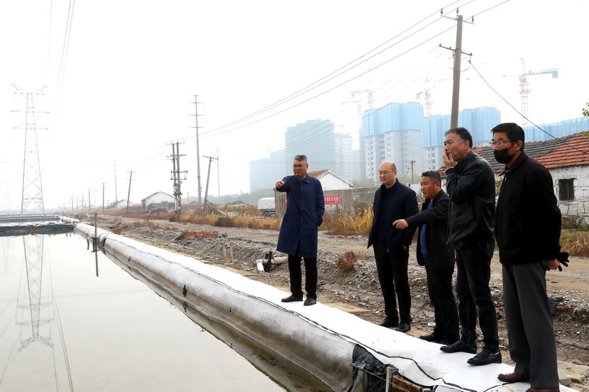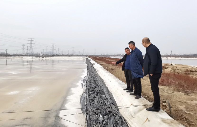 17日上午,公司領(lǐng)導王德志、卞霄帶領(lǐng)礦鹵制鹽升級工程指揮部一行調研灘地改造項目。