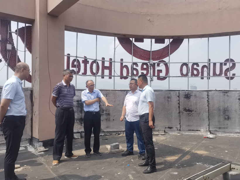 為進(jìn)一步吸取蘇州酒店塌樓事故教訓,近日,臺北投資公司全面加強建筑施工領(lǐng)域安全生產(chǎn)檢查。7月14日集團公司安監部胥廣會(huì )等領(lǐng)導一行檢查了公司租賃客戶(hù)蘇豪大酒店裝修工程。