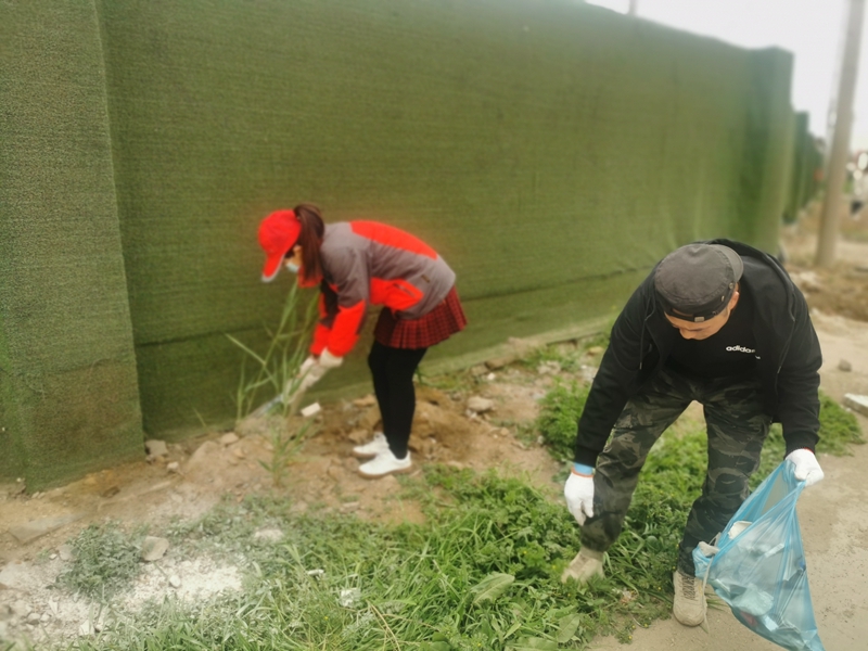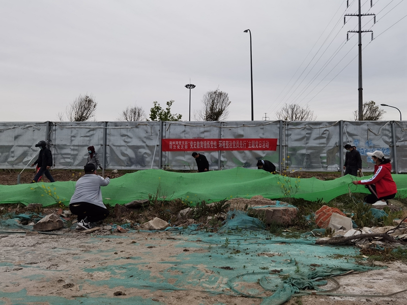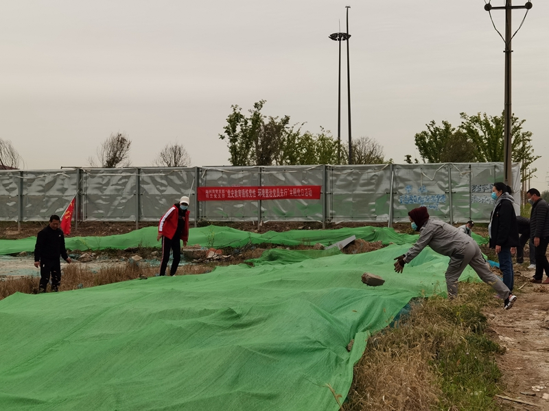 翔立分公司黨支部攜手海州灣公司黨支部對公司的車(chē)站小灘進(jìn)行環(huán)境整治,為裸露在外的土地進(jìn)行防塵網(wǎng)鋪設。