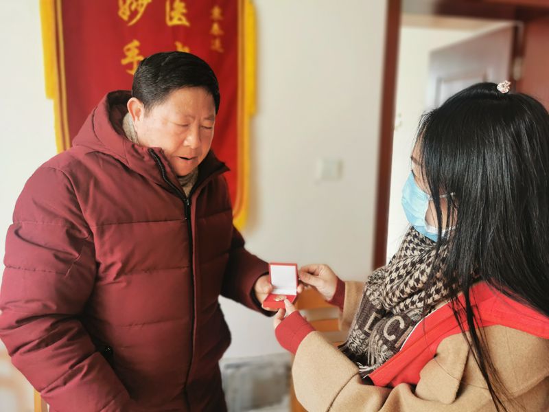 為老黨員送上學(xué)雷鋒紀念章