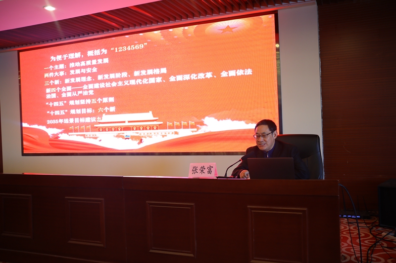 下半場(chǎng),張校長(cháng)從一個(gè)主題,推動(dòng)高質(zhì)量發(fā)展;兩件大事,發(fā)展與安全;三個(gè)新,新發(fā)展理念、新發(fā)展階段、新發(fā)展格局;新四個(gè)全面,全面建設社會(huì )主義現代化國家、全面深化改革、全面依法治國、全面從嚴治黨;“十四五”規劃堅持五個(gè)原則;“十四五”規劃目標,六個(gè)新;2035年遠景目標建議九項措施等九個(gè)方面解讀了全會(huì )精神的“新征程 新理念 新格局 新愿景”。