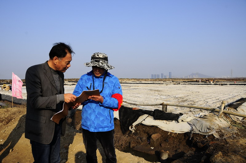 ▲楊善革對扒鹽作業(yè)現場(chǎng)安全生產(chǎn)提出要求