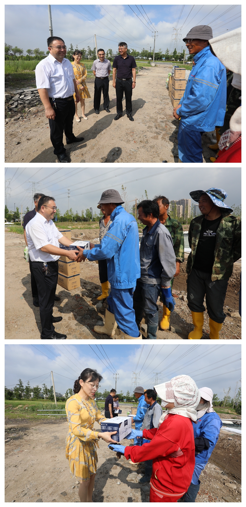 “大家辛苦了!天氣炎熱,注意防暑”“要避開(kāi)高溫時(shí)段作業(yè),靈活調增上班時(shí)間,身體才是第一位”楊龍董事長(cháng)和汪群書(shū)記將防暑消暑物品送到生產(chǎn)現場(chǎng)每一位職工手里,同時(shí)關(guān)切叮囑大家注意身體,做好防暑工作。