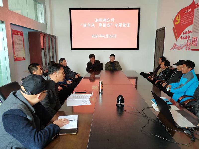 為貫徹落實(shí)投資公司一季度經(jīng)營(yíng)分析會(huì )、“作風(fēng)提升年”暨“兩個(gè)責任”推進(jìn)會(huì )會(huì )議精神,4月25日,海州灣黨支部組織黨員。開(kāi)展了一次“提作風(fēng) 勇?lián)敗睂?zhuān)題黨課。