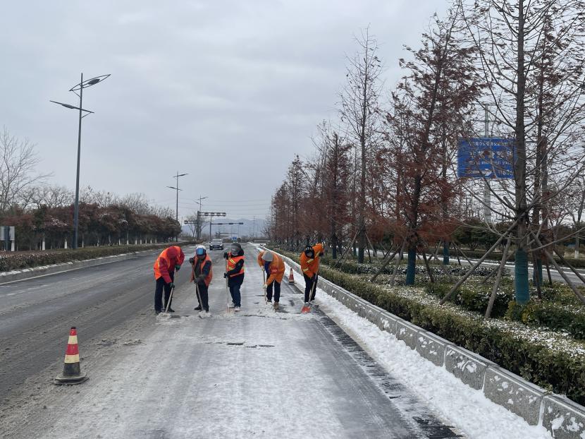 天氣雖冷,但絲毫沒(méi)有影響大家的干勁,經(jīng)過(guò)1個(gè)多小時(shí)的連續奮戰,完成了融雪劑拋撒和清理工作,確保了道路安全暢通。