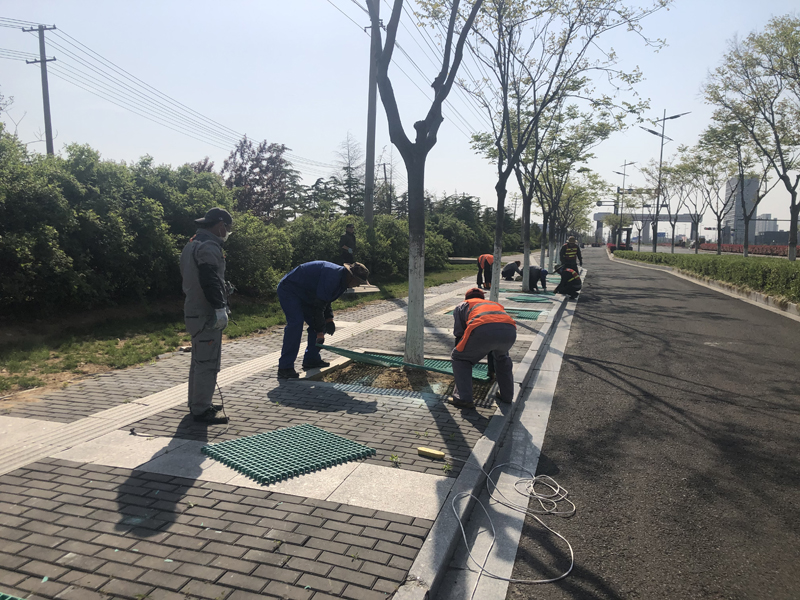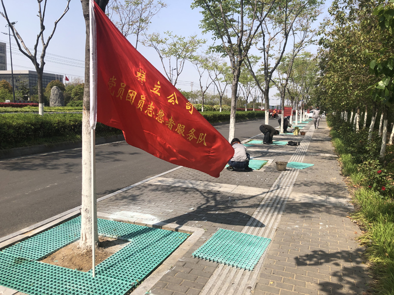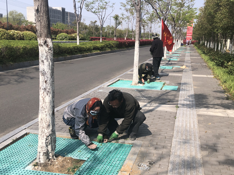 本次志愿奉獻活動(dòng)內容是對黃海大道兩側樹(shù)池進(jìn)行隔柵安裝工程。在接到華茂公司的工程項目后,得知要在3天之內對300座樹(shù)池進(jìn)行作業(yè),各班組在辦公群了解到此項目的工期緊且工程量大時(shí),自發(fā)組織了一場(chǎng)志愿奉獻活動(dòng)。第二天早晨8點(diǎn),26人的身影出現在了黃海大道,炎炎烈日下,我們分成4個(gè)小組,有的手握鐵鍬進(jìn)行填土、有的負責投放隔柵、有的手拿切割器進(jìn)行切割、有的進(jìn)行安裝作業(yè),分工明確、井然有序,充分發(fā)揚了“四拼”工作作風(fēng)。